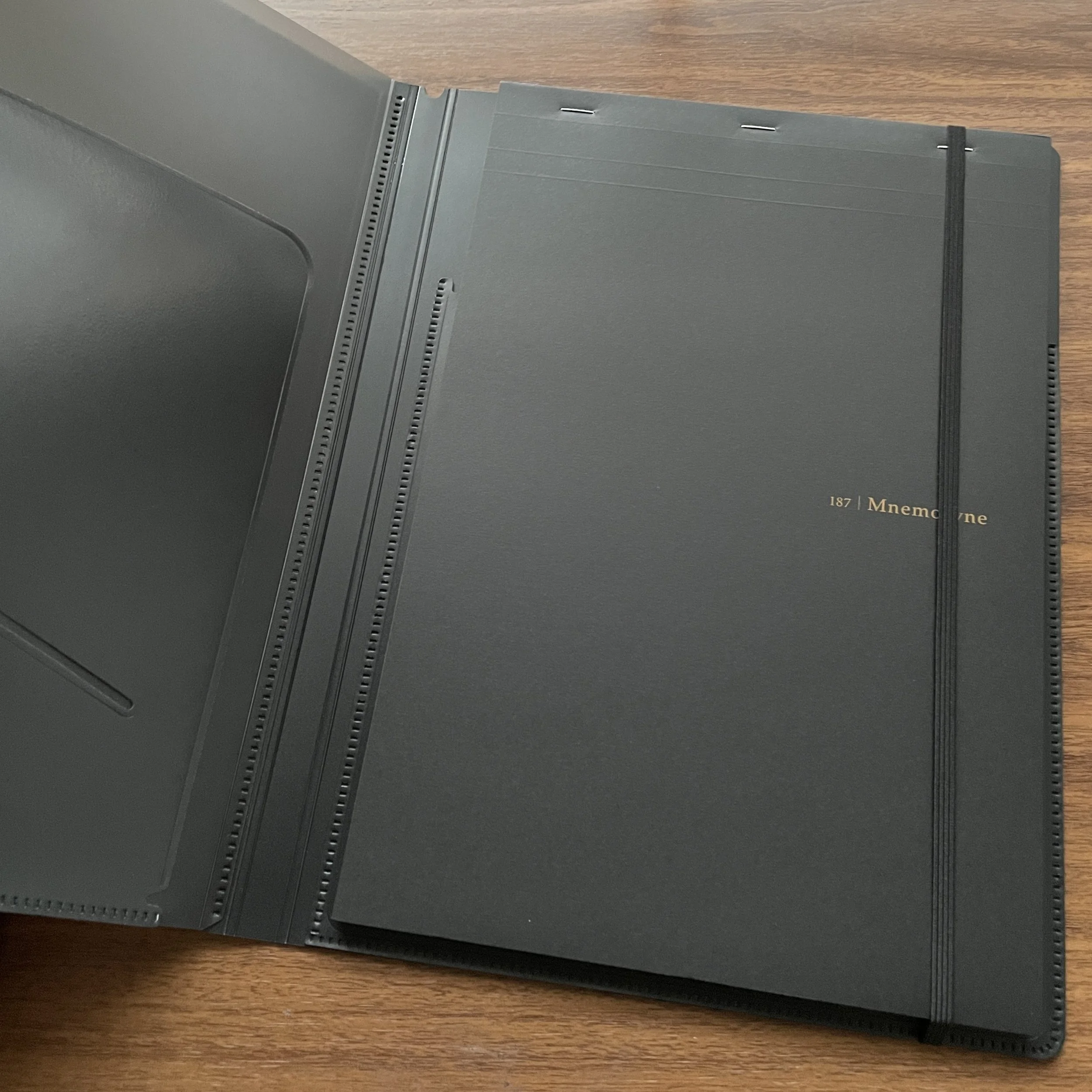It's "Just a Notebook." The Mnemosyne journal looks nice, but at the end of the day it will appear, to the non-stationery-addict eye, indistinguishable from your typical Moleskine, Leuchtturm, Anecdote, Endless, or other similar A5 hardcover with an elastic closure. The fact that I have a dozen just like it sitting outside the door to my office and a few more in my personal stash removes the block you sometimes feel when you have a really nice notebook that you’re hesitant to use because you don’t want to mess it up.