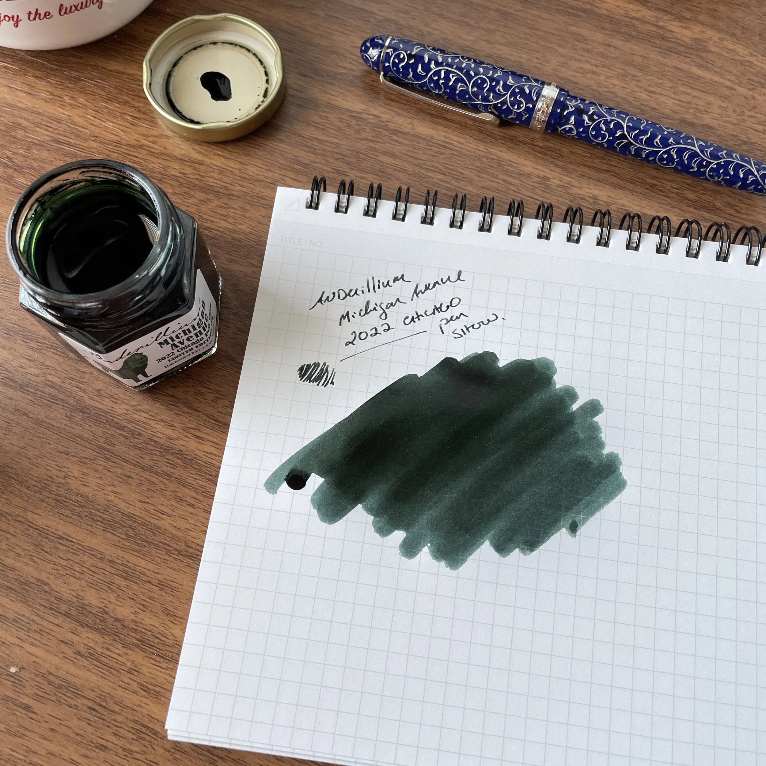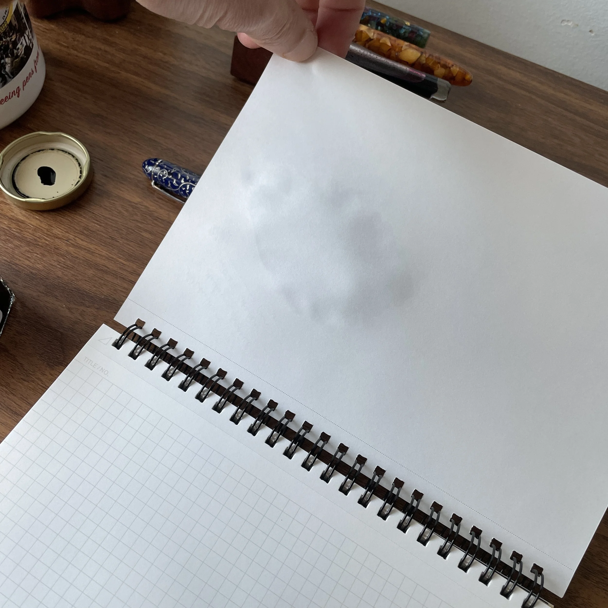 Reliability. Mnemosyne paper works well with all inks + pencil, with decent dry times, no feathering, and very little bleedthrough. The paper in the journal is a step up, at 90gsm instead of the typical 80gsm in the Mnemosyne spirals and the 70gsm in the Maruman Basic notebooks. While I don't really push paper all that much in notebooks that I use as personal journals - I’m writing, not testing inks - I've had no issues with any fountain pens that I've used in my first few days of writing.