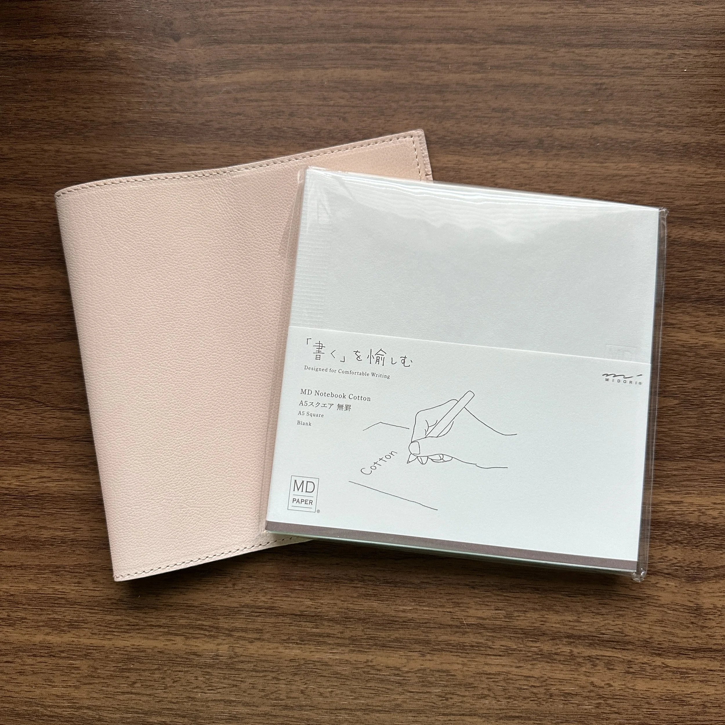 This weekend marked the arrival of a new format in the Midori MD Cotton series: the MD Cotton A5 “Square” notebook. Square notebooks are a popular format in Japan, and this notebook measures approximately 5.75” x 5.75” and contains 176 pages of Midori’s excellent, ink-friendly 20% cotton paper. New hardback Japanese paper covers (with more structure than the standard paper) and natural goat leather covers are also available. Check out our full line of Midori MD products here!