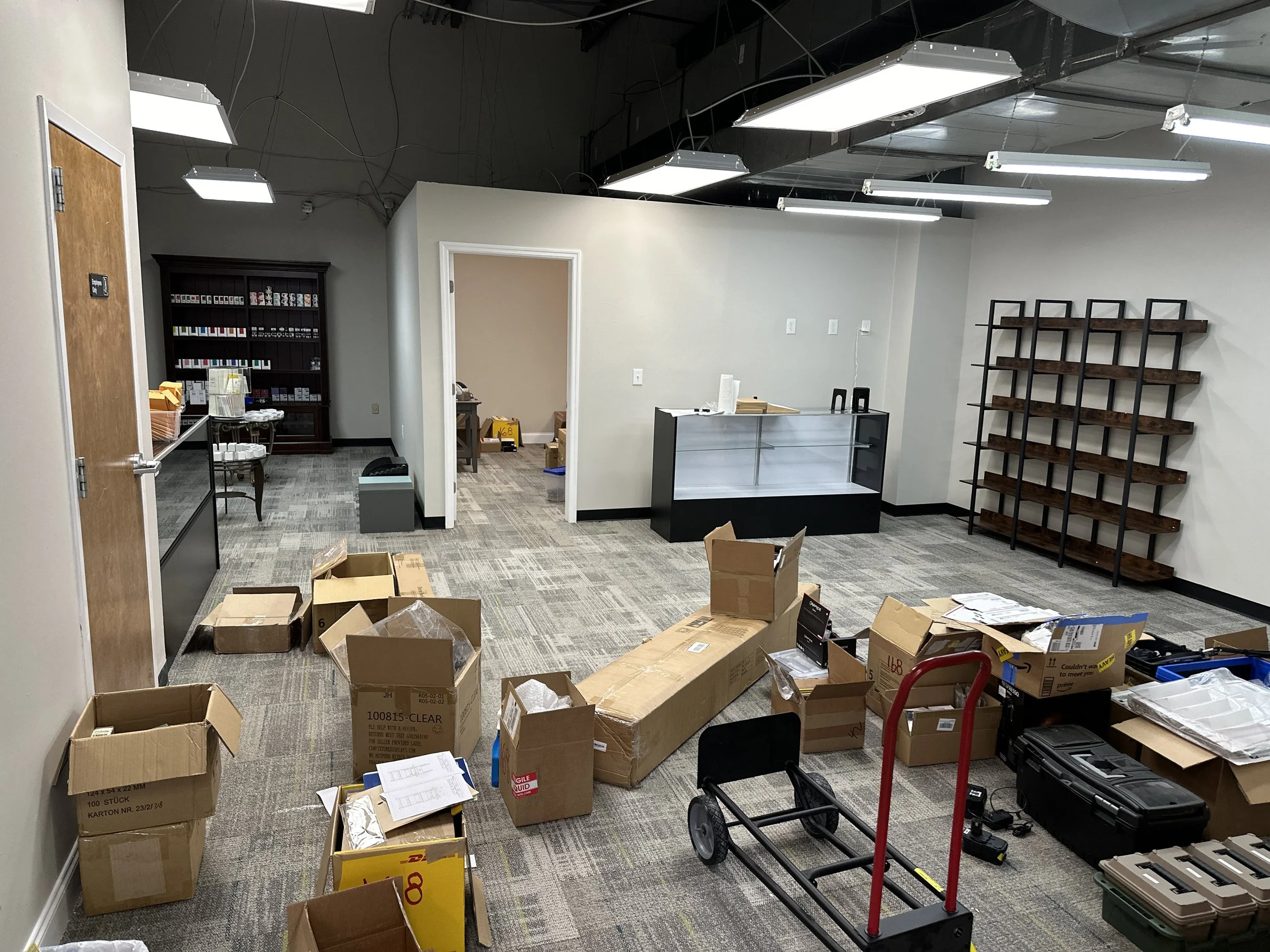The shop shelving and displays are starting to go in and we’re thrilled!