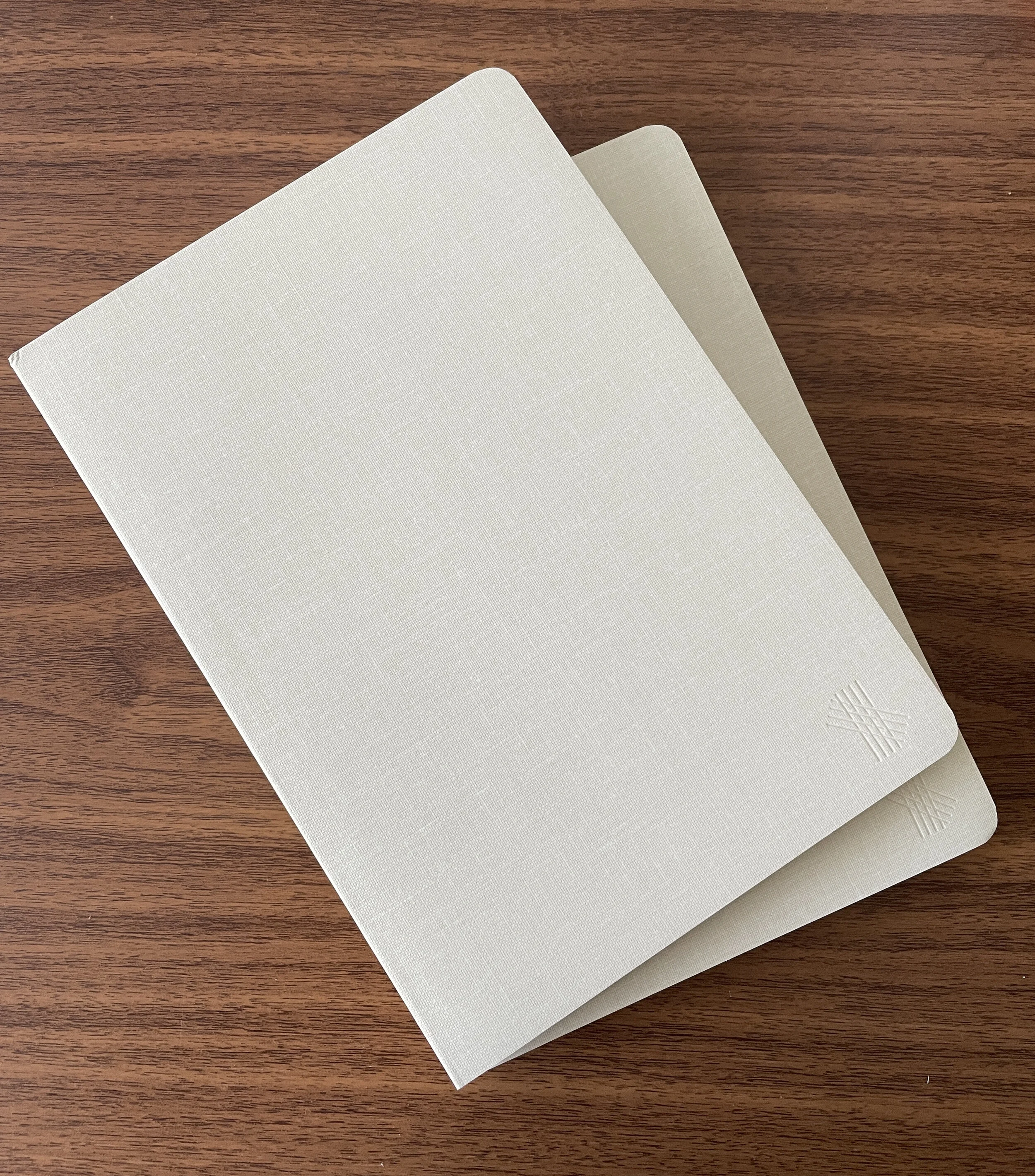 The Musubi Folio notebooks are bound in Japan by a small, family-owned bindery (as opposed to in-house by Musubi in Singapore) and sized to fit Musubi’s forthcoming “Tomo” notebook covers. Featuring 208 pages of Cosmo Air Light paper, you will get ample use out of this notebook. (If maximizing your page count is important to you, 384-page Tomoe River versions are also available.) The Folio notebook features a semi-rigid cotton cover with a linen texture, and should fit most A5 notebook covers in addition to the Musubi Tomo system.