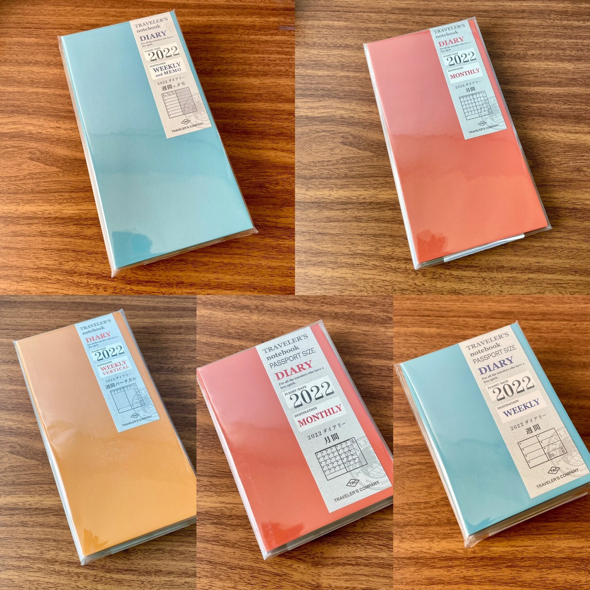 1. Traveler’s Notebook 2022 Planners and Diaries. Traveler’s Company recently released their 2022 Planner/Diary inserts in both Standard and Passport Size. Layouts include Monthly (single books), and Weekly (typically a two-book set). Undated planners are also available for those who enjoy maximum flexibility. Also, for those who want to go ahead and jump-start their planning during the last three months of the year, “July Start 2021 Planners” are on clearance at 50% off.