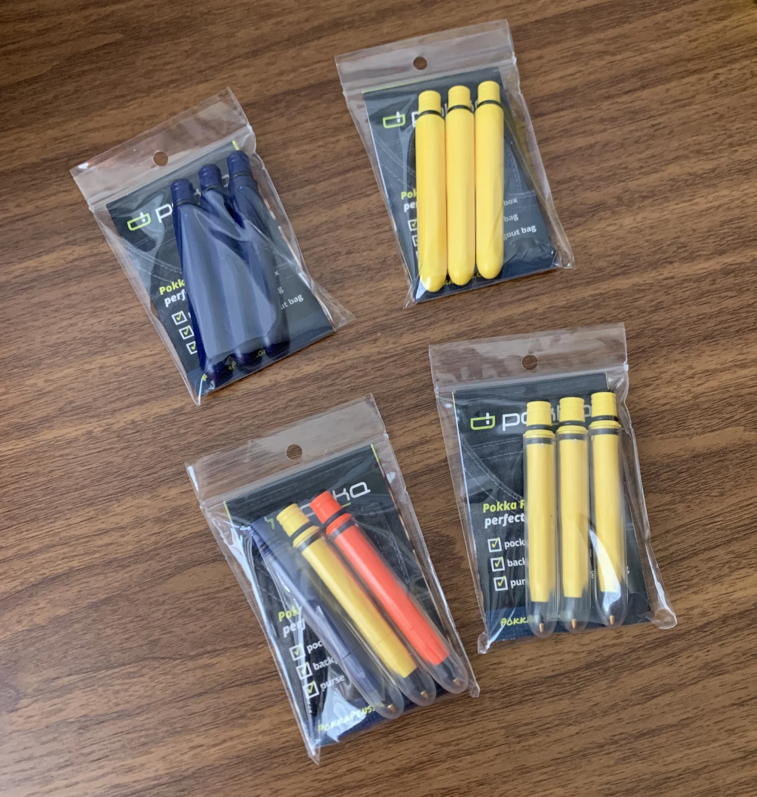 Finally, in response to multiple requests, I’m now stocking three-packs of Pokka Refills, available in blue and red. If you’ve been despairing because you don’t like the black ink included with your Pokkas, swap ‘em all out!