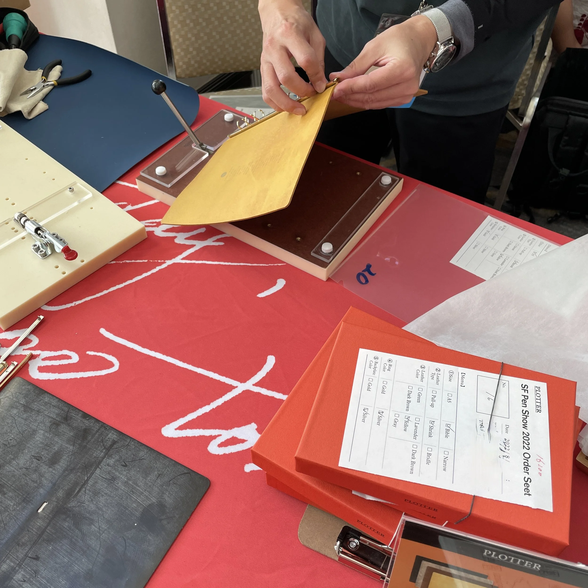 Earlier in August, I was on the fence whether to attend the San Francisco Pen Show at all, and then Plotter announced that they would be on-site with their creative director, Takayuki Saito, hand-assembling special-edition binders in specialty leathers that would only be available at that show. OK, I was in.