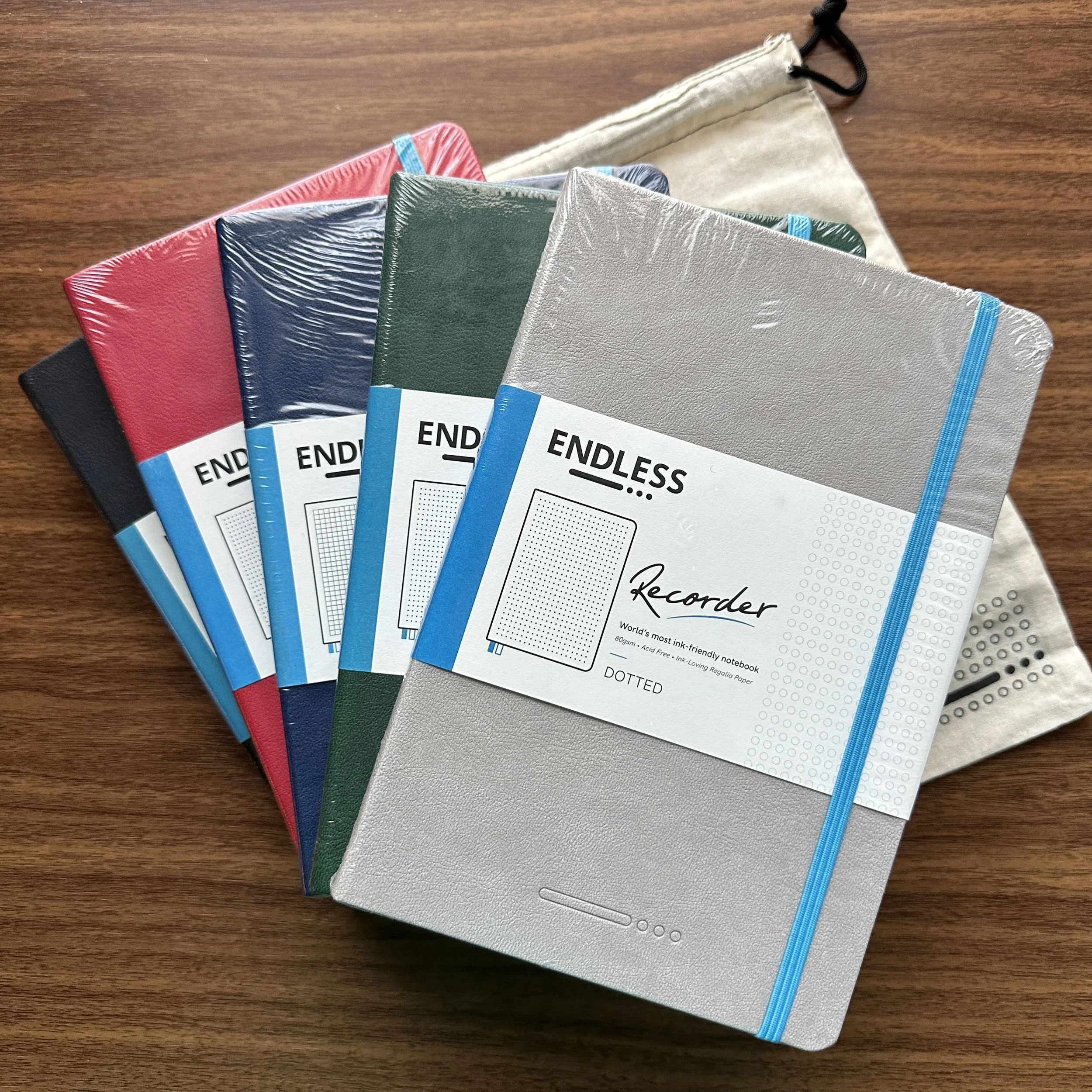 We now have Endless Recorder A5 Notebooks in all five colors! Most rulings are available with more on the way as some color/ruling combinations are backordered.