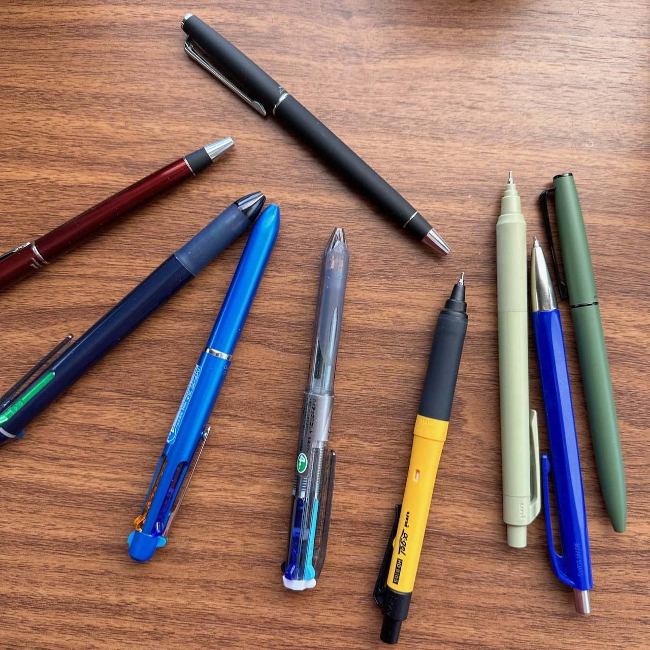 Caran d’Ache 849 Ballpoint Pens: Standard, ColorMat-X and Pop Line. This classic hexagonal ballpoint pen has been one of our top sellers ever since we opened. The matte-textured ColorMat-X and the Black Code editions are my personal favorites, though the “Totally Swiss” Swiss Cross edition is the underrated sleeper.