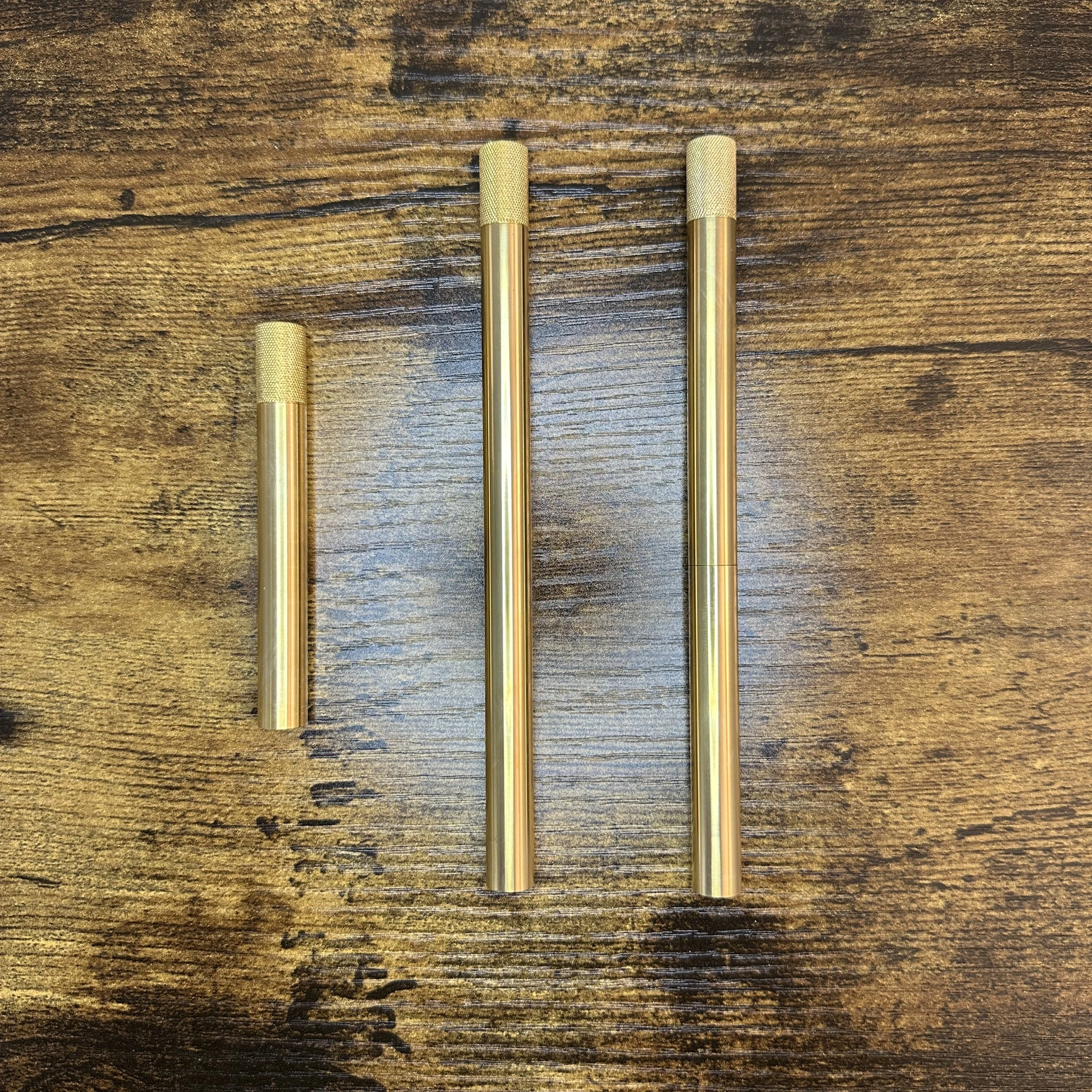 The Lumos Pro Duo (left) and Lumos Mini in brass.